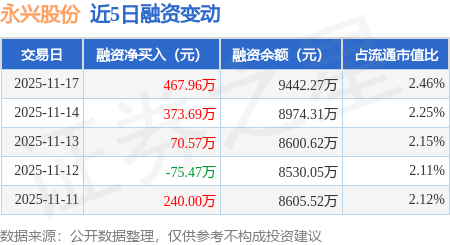 证券之星消息,11月17日,永兴股份(601033)融资买入1264.01万元,融资偿还796.05万元,融资净买入467.96万元,融资余额9442.27万元,近3个交易日已连续净买入累计912.21万元,近20个交易日中有12个交易日出现融资净买入。