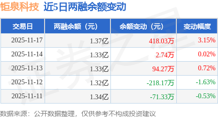 融资融券余额1.37亿元,较昨日上涨3.15%。