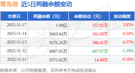 证券之星消息,11月17日,青岛港(601298)融资买入1971.62万元,融资偿还1582.83万元,融资净买入388.79万元,融资余额1.0亿元,近3个交易日已连续净买入累计1156.36万元,近20个交易日中有11个交易日出现融资净买入。