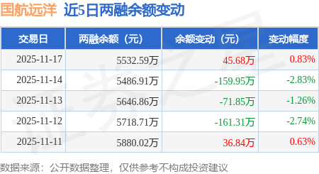 证券之星消息,11月17日,国航远洋(920571)融资买入1287.75万元,融资偿还1242.06万元,融资净买入45.68万元,融资余额5532.59万元。
