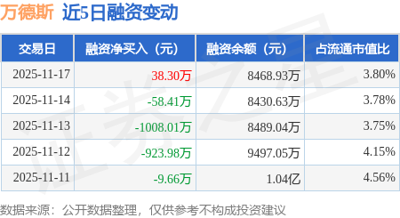 证券之星消息,11月17日,万德斯(688178)融资买入271.15万元,融资偿还232.84万元,融资净买入38.3万元,融资余额8468.93万元。