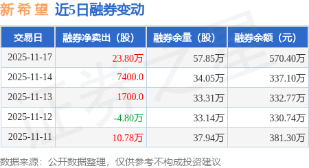 证券之星消息,11月17日,新 希 望(000876)融资买入3174.06万元,融资偿还3141.6万元,融资净买入32.46万元,融资余额7.62亿元。