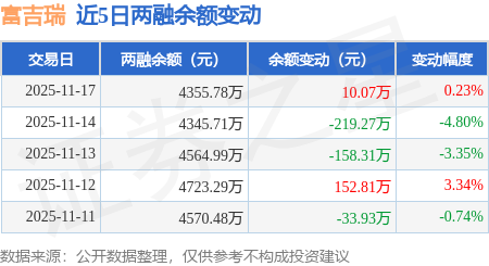 证券之星消息,11月17日,富吉瑞(688272)融资买入299.86万元,融资偿还289.79万元,融资净买入10.07万元,融资余额4355.78万元。