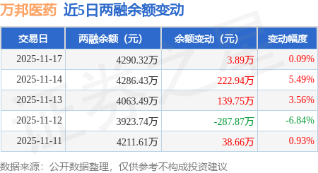证券之星消息,11月17日,万邦医药(301520)融资买入192.91万元,融资偿还189.01万元,融资净买入3.89万元,融资余额4290.32万元,近3个交易日已连续净买入累计366.58万元。
