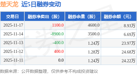 融券方面,当日融券卖出1300.0股,融券偿还200.0股,融券净卖出1100.0股,融券余量4600.0股。
