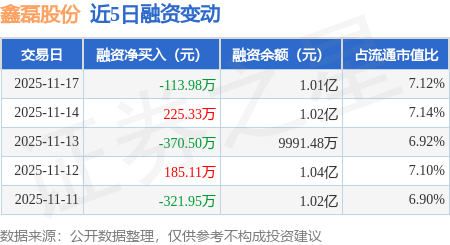 证券之星消息,11月17日,鑫磊股份(301317)融资买入198.1万元,融资偿还312.08万元,融资净卖出113.98万元,融资余额1.01亿元。