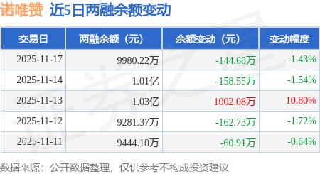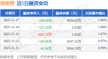 证券之星消息,11月17日,诺唯赞(688105)融资买入413.17万元,融资偿还549.81万元,融资净卖出136.64万元,融资余额9934.62万元。