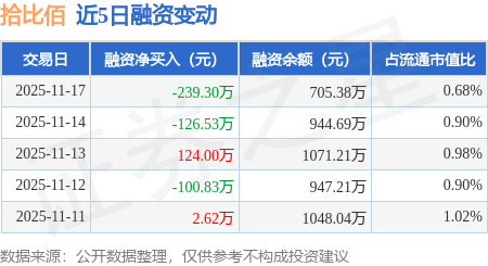 证券之星消息,11月17日,拾比佰(920768)融资买入116.59万元,融资偿还355.9万元,融资净卖出239.3万元,融资余额705.38万元。