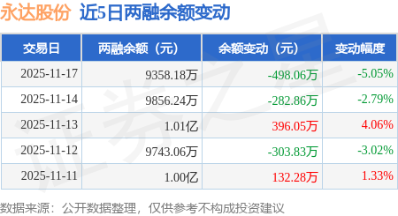 证券之星消息,11月17日,永达股份(001239)融资买入449.94万元,融资偿还948.0万元,融资净卖出498.06万元,融资余额9358.18万元。