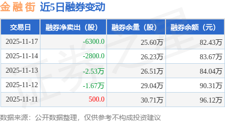 证券之星消息,11月17日,金 融 街(000402)融资买入895.94万元,融资偿还2013.03万元,融资净卖出1117.09万元,融资余额3.91亿元。