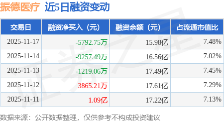 证券之星消息,11月17日,振德医疗(603301)融资买入6647.54万元,融资偿还1.24亿元,融资净卖出5792.75万元,融资余额15.98亿元,近20个交易日中有11个交易日出现融资净买入。