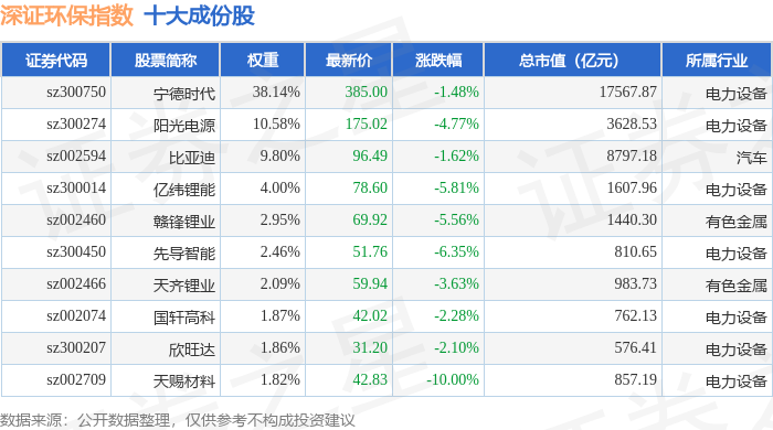 证券之星消息,11月18日,深证环保(399638)指数报收于7658.35点,跌2.98%,成交1123.68亿元,换手率2.03%。当日该指数成份股中,上涨的有3家,惠城环保以5.3%的涨幅领涨,下跌的有37家,富临精工以15.58%的跌幅领跌。