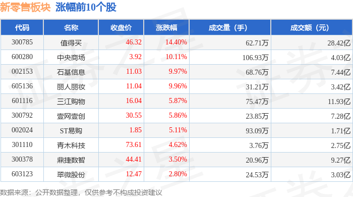 从资金流向上来看,当日新零售板块主力资金净流出2.71亿元,游资资金净流出5.02亿元,散户资金净流入7.73亿元。新零售板块个股资金流向见下表: