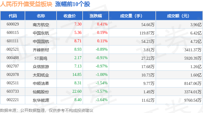 从资金流向上来看,当日人民币升值受益板块主力资金净流出13.18亿元,游资资金净流入1.59亿元,散户资金净流入11.59亿元。人民币升值受益板块个股资金流向见下表: