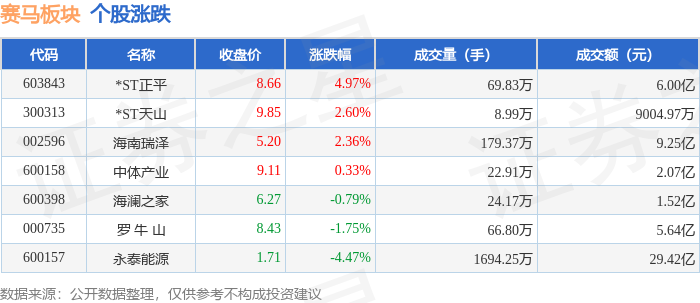 证券之星消息,11月18日赛马板块较上一交易日下跌1.63%,永泰能源领跌。当日上证指数报收于3939.81,下跌0.81%。深证成指报收于13080.49,下跌0.92%。赛马板块个股涨跌见下表: