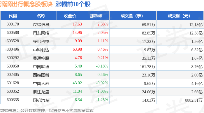 从资金流向上来看,当日滴滴出行概念股板块主力资金净流出3.22亿元,游资资金净流入1.6亿元,散户资金净流入1.63亿元。滴滴出行概念股板块个股资金流向见下表: