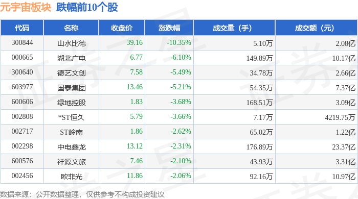 证券之星消息,11月18日元宇宙板块较上一交易日上涨1.0%,福石控股领涨。当日上证指数报收于3939.81,下跌0.81%。深证成指报收于13080.49,下跌0.92%。元宇宙板块个股涨跌见下表: