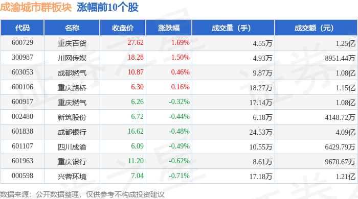 从资金流向上来看,当日成渝城市群板块主力资金净流出2.93亿元,游资资金净流入5214.03万元,散户资金净流入2.41亿元。成渝城市群板块个股资金流向见下表: