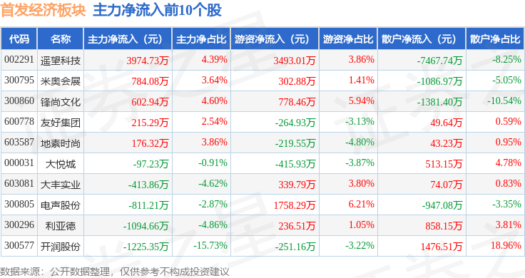 从资金流向上来看,当日首发经济板块主力资金净流出1.85亿元,游资资金净流入1.02亿元,散户资金净流入8311.22万元。首发经济板块个股资金流向见下表: