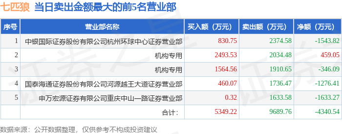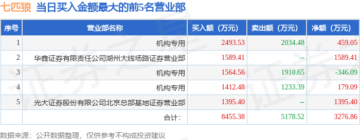证券之星消息,沪深交易所2025年11月18日公布的交易公开信息显示,七匹狼(002029)因日涨幅偏离值达到7%的前5只证券登上龙虎榜。此次是近5个交易日内第1次上榜。