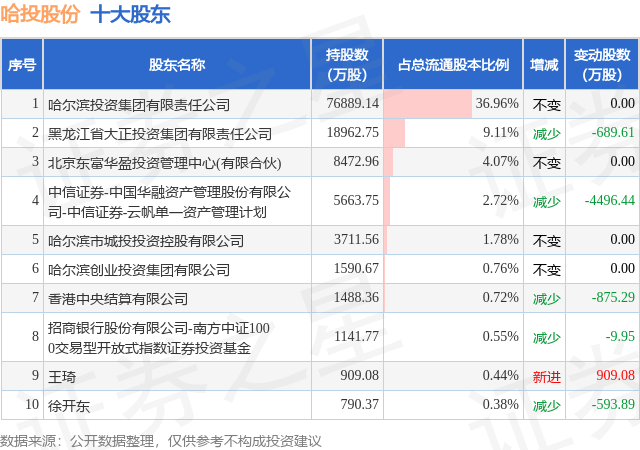 根据哈投股份2025年三季报公布的十大股东详情如下: