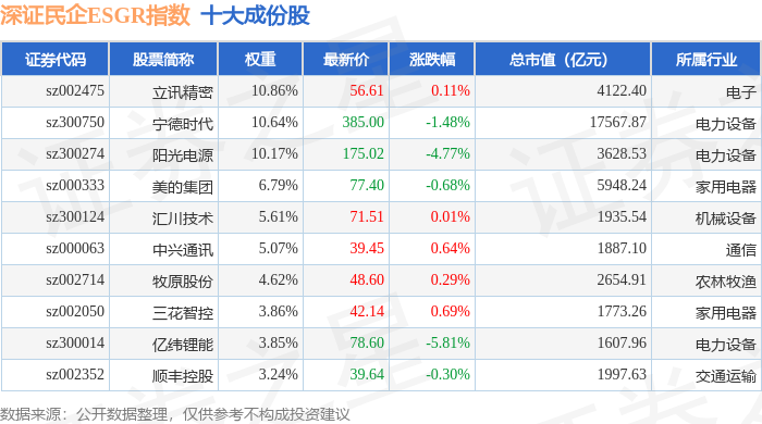 深证民企ESGR(470056)指数十大成份股详情如下: