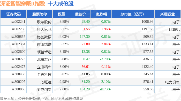 深证智能穿戴R(470074)指数十大成份股详情如下: