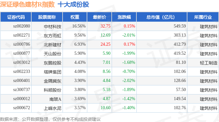 深证绿色建材R(470077)指数十大成份股详情如下: