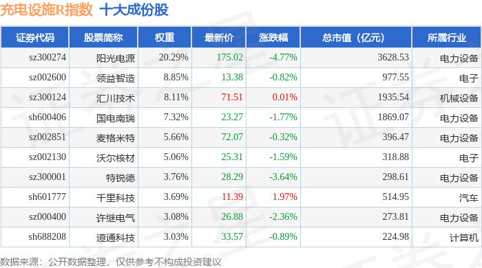 充电设施R(480077)指数十大成份股详情如下: