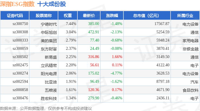 证券之星消息,11月18日,深指ESG(970026)指数报收于13894.31点,跌0.92%,成交4185.49亿元,换手率1.75%。当日该指数成份股中,上涨的有109家,蓝色光标以11.51%的涨幅领涨,下跌的有284家,富临精工以15.58%的跌幅领跌。