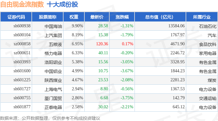 自由现金流(980092)指数十大成份股详情如下: