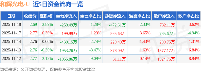 证券之星消息,截至2025年11月18日收盘,和辉光电(688538)报收于2.69元,下跌2.89%,换手率1.3%,成交量74.63万手,成交额2.02亿元。