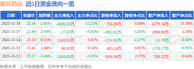 证券之星消息,截至2025年11月18日收盘,联环药业(600513)报收于22.16元,下跌2.81%,换手率5.89%,成交量16.81万手,成交额3.76亿元。