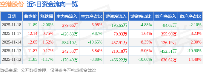 证券之星消息,截至2025年11月18日收盘,空港股份(600463)报收于11.89元,下跌2.06%,换手率1.12%,成交量3.36万手,成交额4008.65万元。