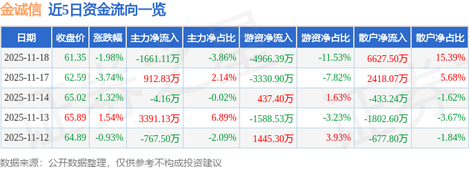 11月18日的资金流向数据方面,主力资金净流出1661.11万元,占总成交额3.86%,游资资金净流出4966.39万元,占总成交额11.53%,散户资金净流入6627.5万元,占总成交额15.39%。