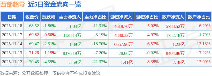 11月18日的资金流向数据方面,主力资金净流出1.04亿元,占总成交额11.31%,游资资金净流入4618.7万元,占总成交额5.02%,散户资金净流入5783.52万元,占总成交额6.29%。
