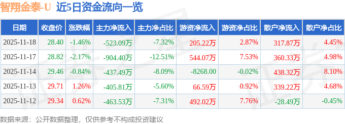 证券之星消息,截至2025年11月18日收盘,智翔金泰(688443)报收于28.4元,下跌1.46%,换手率2.14%,成交量2.5万手,成交额7141.33万元。