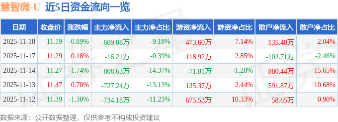 证券之星消息,截至2025年11月18日收盘,慧智微(688512)报收于11.19元,下跌0.89%,换手率1.83%,成交量5.93万手,成交额6635.08万元。