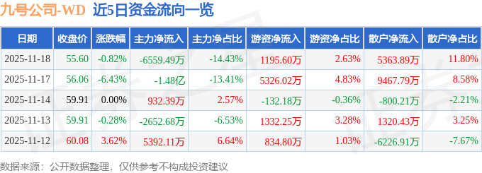 证券之星消息,截至2025年11月18日收盘,九号公司(689009)报收于55.6元,下跌0.82%,换手率1.48%,成交量8.17万手,成交额4.55亿元。