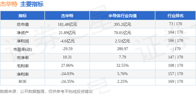 杰华特2025年三季报显示,前三季度公司主营收入19.42亿元,同比上升63.01%;归母净利润-4.6亿元,同比上升9.29%;扣非净利润-5.18亿元,同比上升2.72%;其中2025年第三季度,公司单季度主营收入7.55亿元,同比上升71.18%;单季度归母净利润-1.65亿元,同比上升3.06%;单季度扣非净利润-1.91亿元,同比下降10.42%;负债率57.91%,投资收益941.07万元,财务费用-1195.71万元,毛利率27.06%。杰华特(688141)主营业务:模拟集成电路的研发与销售。