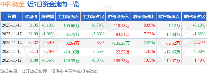 11月18日的资金流向数据方面,主力资金净流出109.06万元,占总成交额9.78%,游资资金净流入110.18万元,占总成交额9.89%,散户资金净流出1.12万元,占总成交额0.1%。