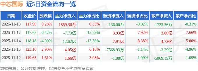 证券之星消息,截至2025年11月18日收盘,中芯国际(688981)报收于117.96元,上涨0.28%,换手率2.37%,成交量47.39万手,成交额56.3亿元。