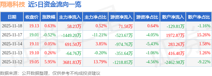 证券之星消息,截至2025年11月18日收盘,翔港科技(603499)报收于19.13元,上涨0.63%,换手率1.94%,成交量5.86万手,成交额1.12亿元。