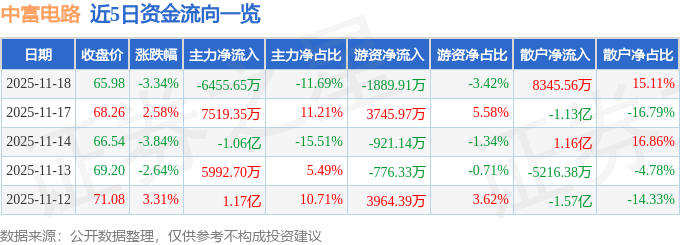 证券之星消息,截至2025年11月18日收盘,中富电路(300814)报收于65.98元,下跌3.34%,换手率4.34%,成交量8.31万手,成交额5.52亿元。