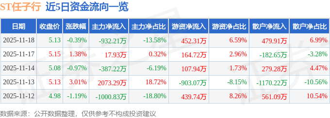 11月18日的资金流向数据方面,主力资金净流出932.21万元,占总成交额13.58%,游资资金净流入452.31万元,占总成交额6.59%,散户资金净流入479.91万元,占总成交额6.99%。