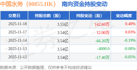 证券之星消息,11月18日南向资金增持142.6万股中国水务(00855.HK)。近5个交易日中,获南向资金增持的有2天,累计净增持70.6万股。近20个交易日中,获南向资金减持的有10天,累计净减持36.2万股。截至目前,南向资金持有中国水务(00855.HK)3.55亿股,占公司已发行普通股的21.74%。