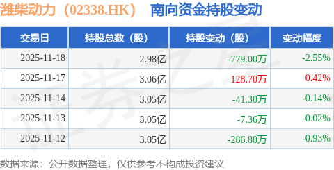 证券之星消息,11月18日南向资金减持779.0万股潍柴动力(02338.HK)。近5个交易日中,获南向资金减持的有4天,累计净减持985.76万股。近20个交易日中,获南向资金减持的有11天,累计净减持1589.88万股。截至目前,南向资金持有潍柴动力(02338.HK)2.98亿股,占公司已发行普通股的15.33%。