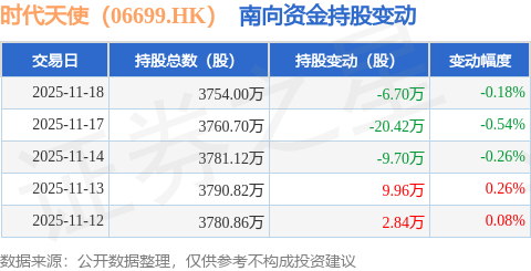 证券之星消息,11月18日南向资金减持6.7万股时代天使(06699.HK)。近5个交易日中,获南向资金减持的有3天,累计净减持24.02万股。近20个交易日中,获南向资金增持的有9天,累计净增持4.71万股。截至目前,南向资金持有时代天使(06699.HK)3754.0万股,占公司已发行普通股的21.97%。