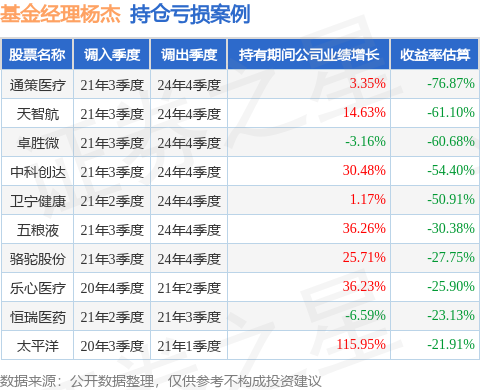 杨杰管理的金信民旺债券A基金在21年3季度买入通策医疗,在持有3年又1个季度后在24年4季度卖出。持有期间的估算收益率为-76.87%,持有期间通策医疗在2021年到2024年的年报营业总收入增幅达3.35%。