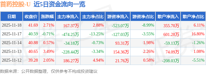 证券之星消息,截至2025年11月18日收盘,首药控股(688197)报收于41.69元,上涨2.71%,换手率2.18%,成交量1.4万手,成交额5819.19万元。